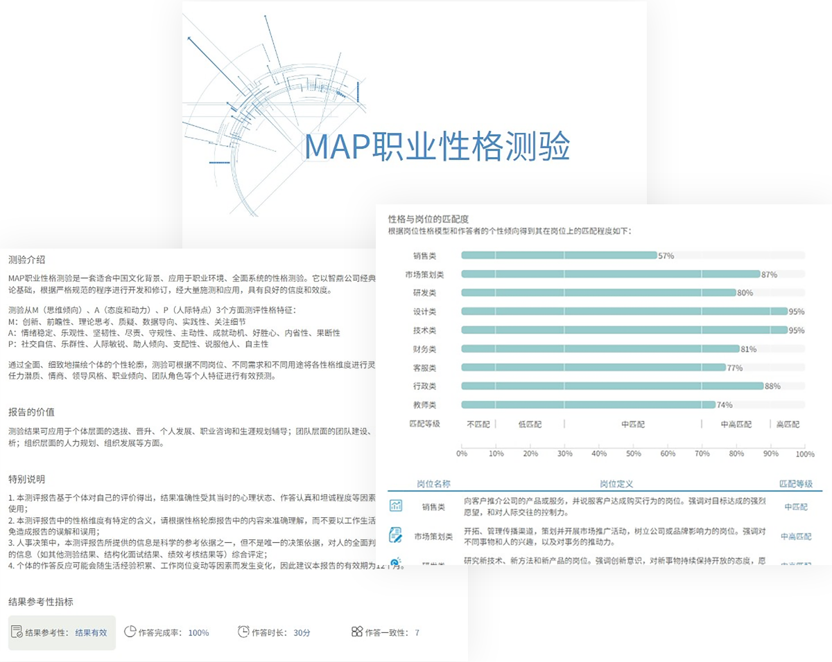 (3)测评结果即时生成,方便求职者了解自己的职业能力和发展方向。